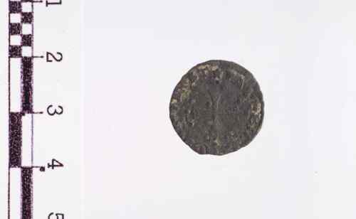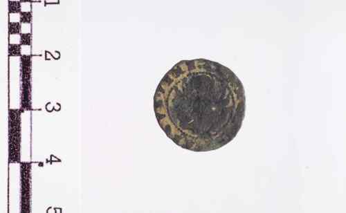 Croce pisana ornata di 16 globetti: 12 alle estremità delle braccia e 4 agli angoli; cerchio lineare