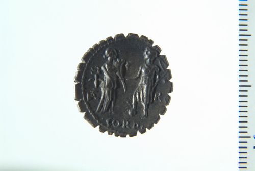 Teste accollate di Honos e Virtus a d.; contorno perlinato