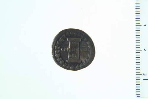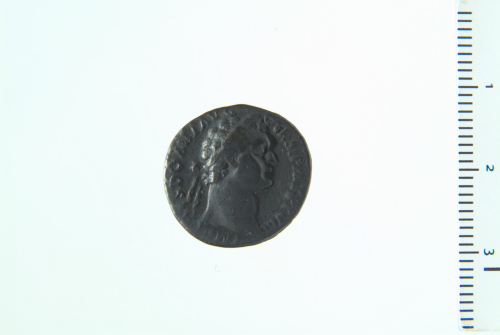 Testa laureata di Domiziano a d.; contorno perlinato.