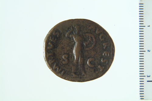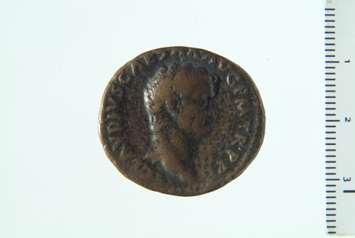 Testa nuda di Claudio a d.; contorno perlinato.