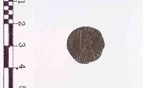 Il Doge con berretto e manto, inginocchiato a s., tiene con ambo le mani il vessillo con croce, la cui banderuola è volta a d., sulla banderuola tre globetti; senza cerchio.