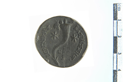Busto velato di Berenice II a d.; contorno perlinato