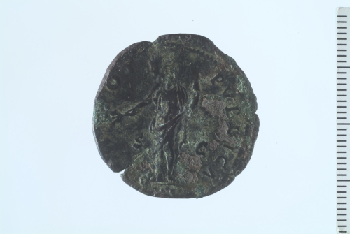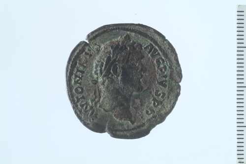 Testa laureata di Antonino Pio a d.; contorno perlinato.