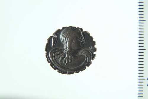 Busto drappeggiato di anfitrite visto da dietro e rivolto a d.; contorno perlinato