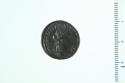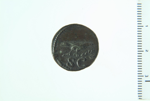 Busto drappeggiato e laureato di Apollo a d.; davanti, ramo; contorno perlinato.