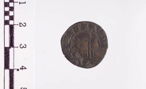 Leone marciano rampante verso d. con zampa su libro aperto, a d. il doge inginocchiato a s. tiene con ambo le mani il vessillo
