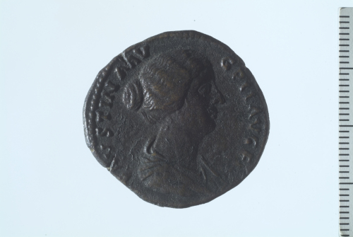 Busto drappeggiato di Faustina II a d.; contorno perlinato.