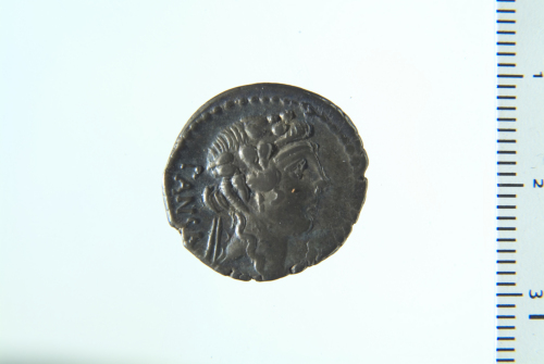 Testa di Libero con corona di vite a d.; contorno perlinato
