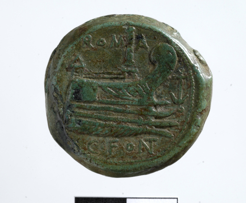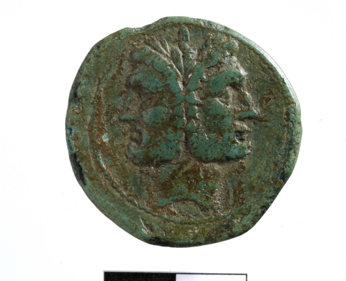 Testa laureata di Giano. Cerchio di puntini.