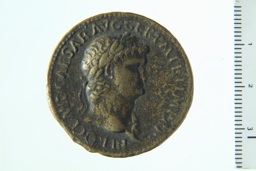 Busto laureato di Nerone a d., con egida; contorno perlinato.