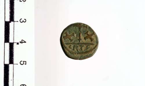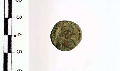 Busto frontale di Costante II con clamide,corona e globo crucigero