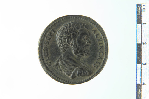 Busto drappeggiato di Clodio Albino a d.; contorno perlinato