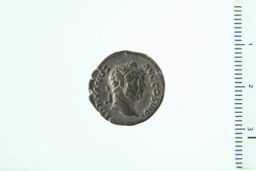 Testa laureata di Adriano a d.; contorno perlinato.