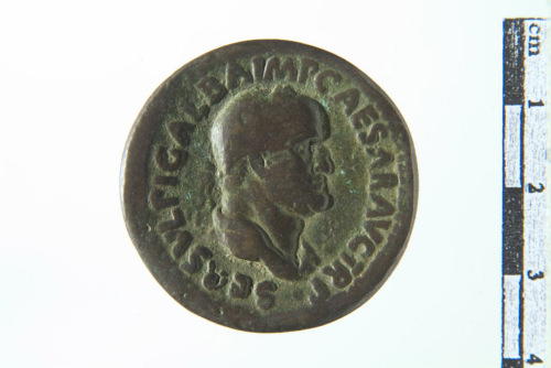 testa laureata di Galba a d.