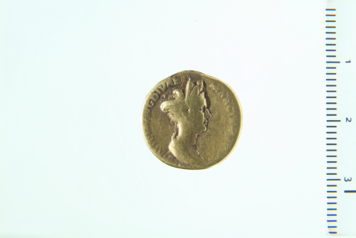 Busto drappeggiato di Matidia a d.; contorno perlinato (?).