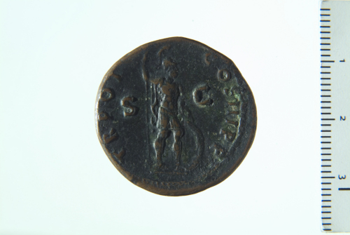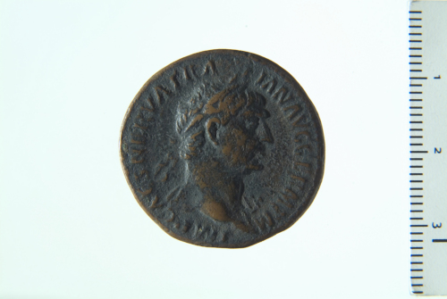 Busto laureato di Traiano d., con egida (?); contorno perlinato.