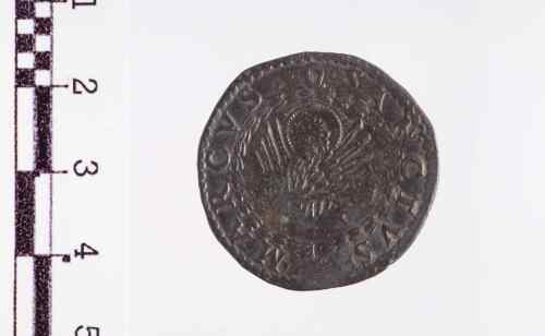 Busto barbato del Doge a s., col capo coperto del corno ducale.