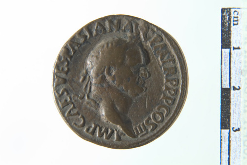 Busto laureato di Vespasiano a d.; contorno perlinato