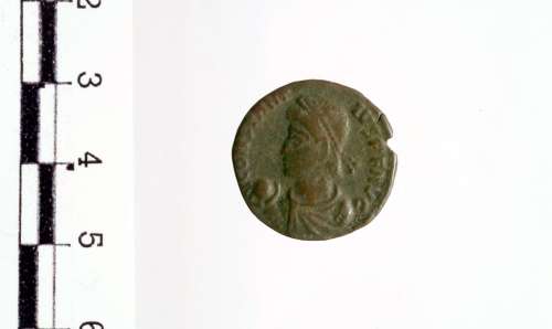 Busto diademato, drappeggiato e corazzato di Costanzo II a s. con globo