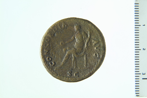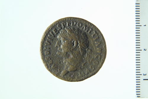 Testa laureata di Domiziano a s.; contorno perlinato.
