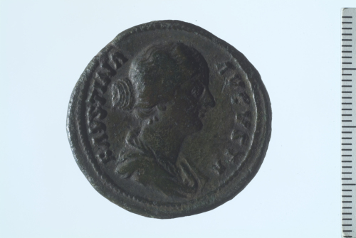 Busto drappeggiato di Faustina II a d.; contorno perlinato.