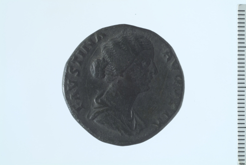 Busto drappeggiato di Faustina II a d.; contorno perlinato.