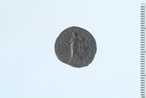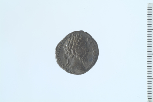 Testa laureata di Marco Aurelio a d.; contorno perlinato.
