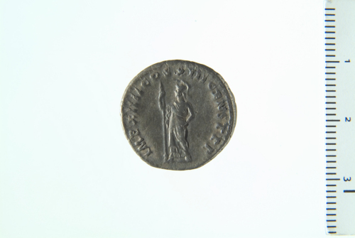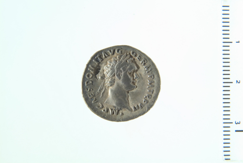 Testa laureata di Domiziano a d.; contorno perlinato.