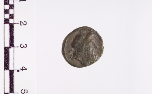 testa di Zeus a d. coronato di foglie di quercia