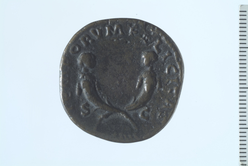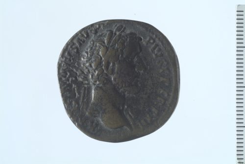 Testa laureata di Antonino Pio a d.; contorno perlinato.