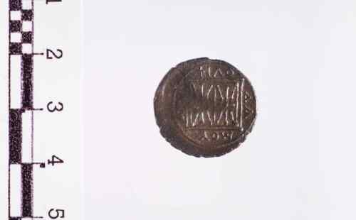 Vacca, stante a s., che allatta un vitello; a s.: spiga di grano; in esergo: timone