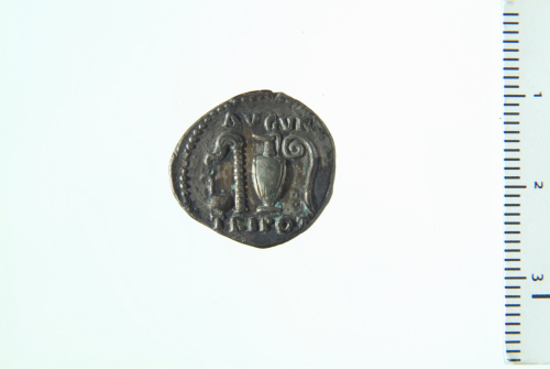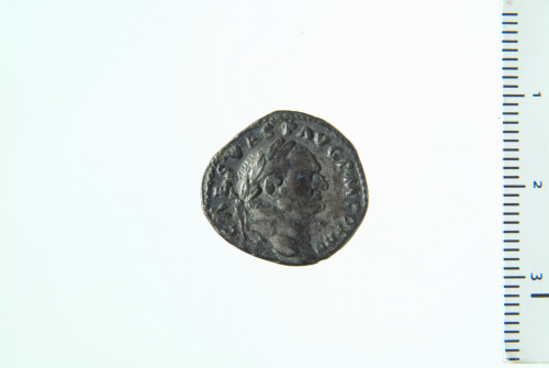 Testa laureata di Vespasiano a d.; contorno perlinato.
