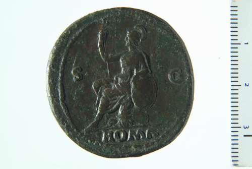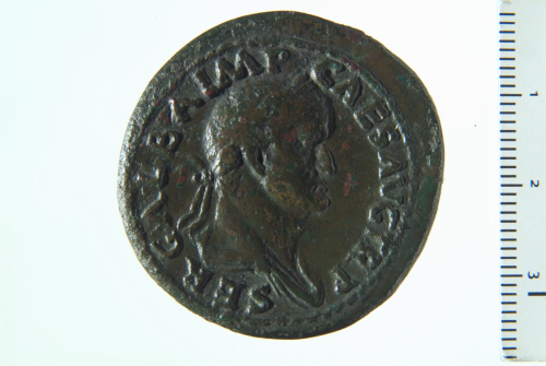Busto laureato e drappeggiato di Galba a d.; contorno perlinato.
