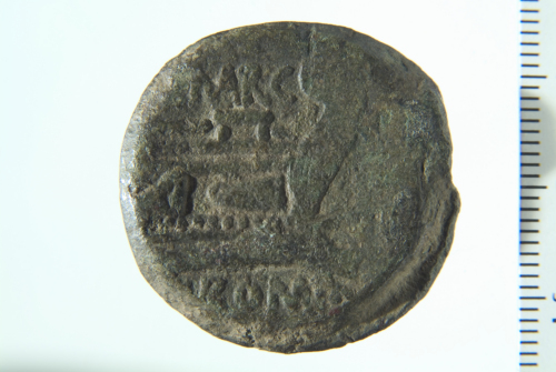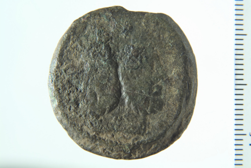 Testa laureata e barbata di Giano bifronte; contorno perlinato