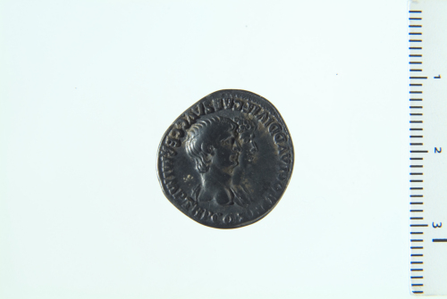 Busti accollati di Nerone e Agrippina II a d.; busto di Nerone, in primo piano, a testa nuda e drappegiato sulla spalla s.; busto di Agrippina II, in secondo piano,a testa nuda e drappeggiato; contorno perlinato.