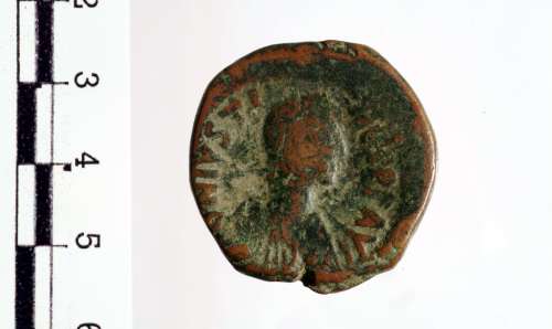 Busto diademato, drappeggiato e corazzato di Giustino I a d.