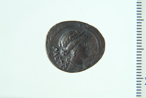 Testa di Venere laureata e diademata a d.; contorno perlinato