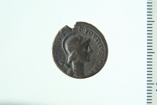 Busto elmato e drappeggiato di Marte a d. con trofeo sulla spalla; contorno perlinato
