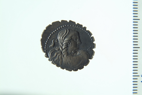 Busto drappeggiato di anfitrite visto da dietro e rivolto a d.; contorno perlinato