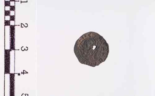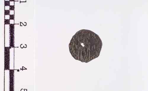Il Doge con berretto e manto in piedi a s., tiene con ambo le mani il vessillo.