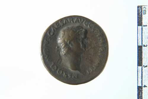 Testa laureata di Nerone a d. con egida