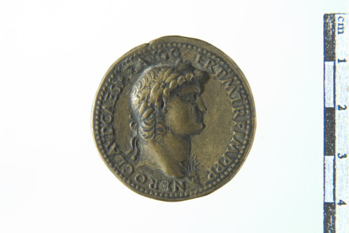 Testa laureata di Nerone a d. con egida
