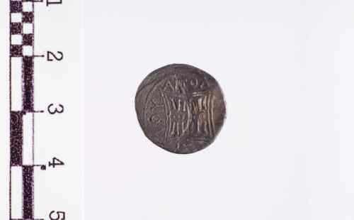 Vacca, stante a s., che allatta un vitello; esergo illeggibile