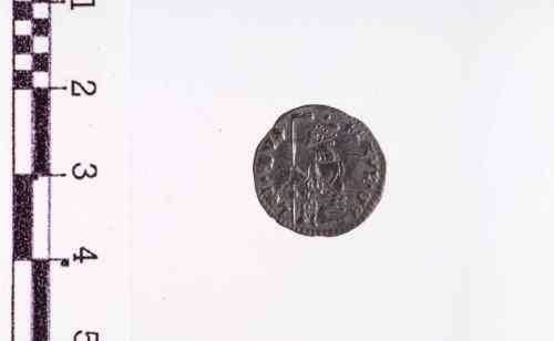 Il Doge inginocchiato a s. tiene con ambo le mani il vessillo.
