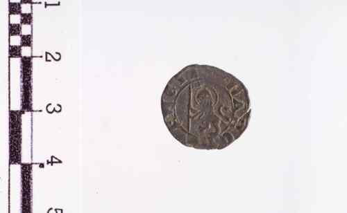 Il Doge con berretto e manto, inginocchiato a s., tiene con ambo le mani il vessillo con croce, la cui banderuola è volta a d.; senza cerchio.