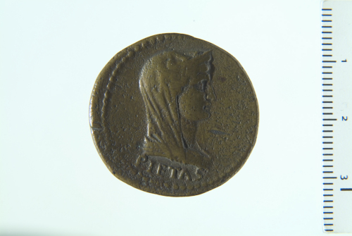 Busto velato, diademato e drappeggiato di Pietas a d.; contorno perlinato