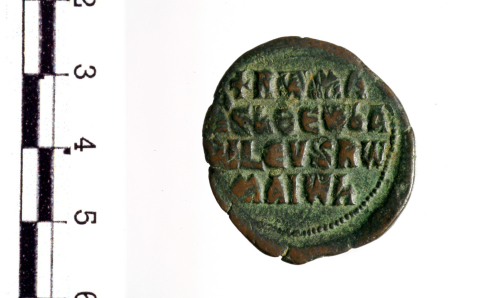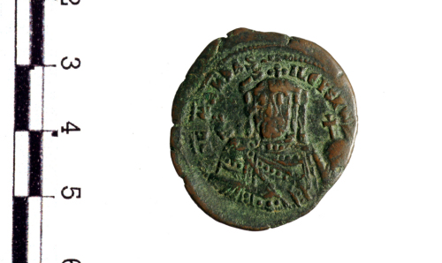 Busto frontale di Romano I con clamide e corona; labaro nella mano d. e globo sormontato da croce nella mano s.