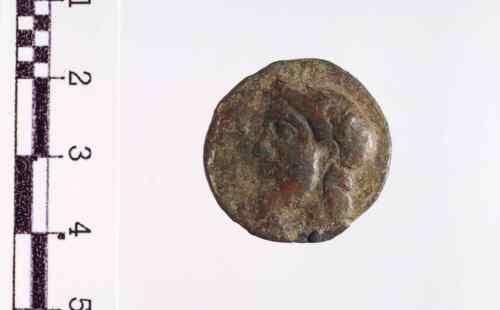 Testa laureata di Zeus a s.