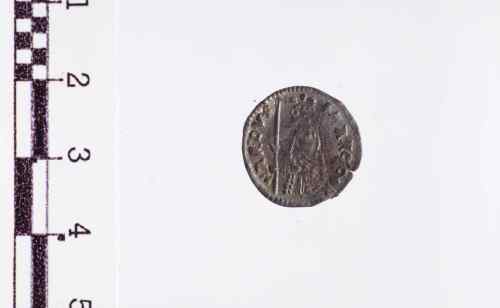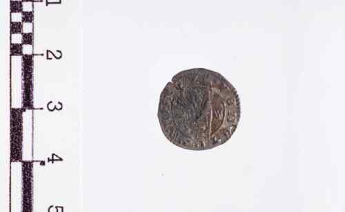 Il Doge inginocchiato a s., tiene con ambo le mani il vessillo.