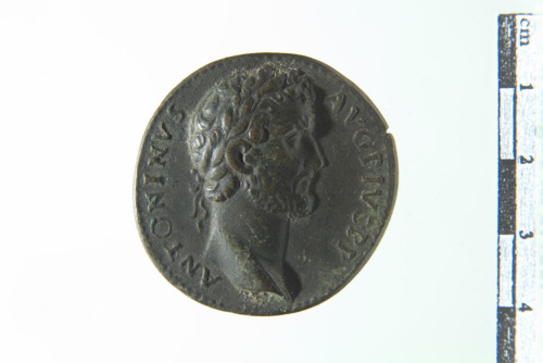 Busto laureato di Antonino Pio a d.; contorno perlinato